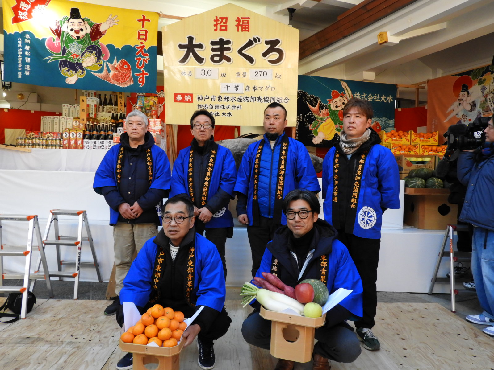 「えべっさん」にマグロを奉納/西宮神社で商売繁盛を祈願/青果部は二股大根/神戸市中央卸売市場東部市場